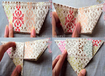 - Ok! So here we again go triangle and rectangle folds followed by folding the points at the centre forming small triangles. This is really a fun tutorial. :-)